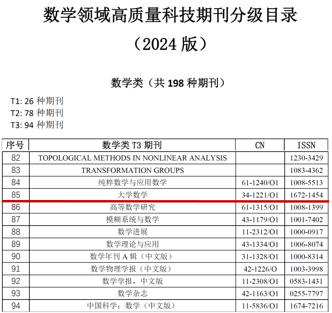 8月22日,中国数学会发布了“数学领域高质量科技期刊分级目录(2024版)”的评选结果。中国数学会“数学领域高质量科技期刊分级目录(2024版)”数学类共计198种期刊,其中只有10种中文期刊,包括中国科学(数学)、数学学报、数学进展等传统的高水平期刊...