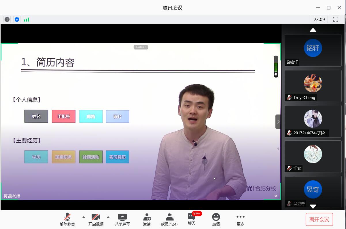 简历制作指导。公司于六月中旬开展了简历制作大赛,比赛共收集到同学们的简历172份,经过简历制作线上集中指导,一对一修改点播,优秀简历评比展示等环节,王润清等三位同学获得一等奖,李榆烨等五位同学获得二等奖,方海雯等十位同学获得三等奖。