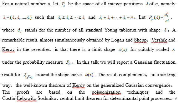 报告题目:Fluctuations on Plancherel interger partitions around its limit shape