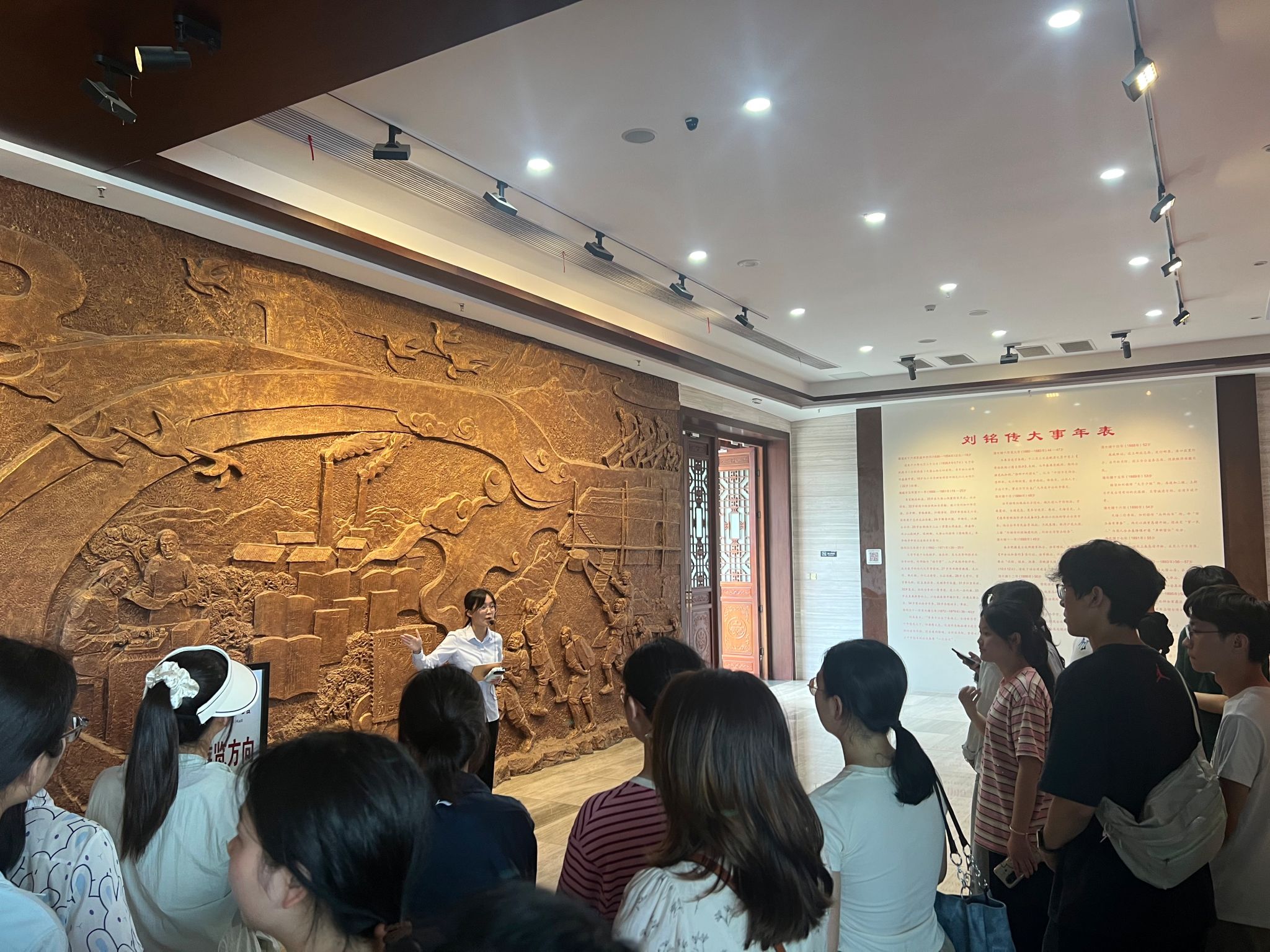 随后,一行人走进刘铭传纪念馆,通过丰富的历史文物、珍贵的图片资料和生动的文字介绍,深入了解刘铭传波澜壮阔的一生。展馆内,一件件实物、一幅幅画卷,将刘铭传抗法保台、建设台湾、发展近代化事业等光辉事迹一一呈现。同学们被刘铭传敢为人先、勇于创新的精神所震撼,更为他坚定的爱国情怀和强烈的民族责任感所感染。在讲解员的讲述下,刘铭传 “舍小家为大家”,为维护国家领土完整和民族尊严,鞠躬尽瘁的形象变得鲜活而立体。