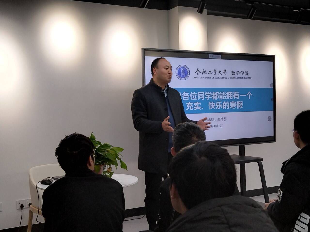 1月17日下午,英国上市公司3652023级本科生在翡翠湖校区十一号楼员工社区召开了2023-2024学年寒假前主题班会。党委员工工作部(处)副部(处)长李志明出席会议并做总结讲话,英国上市公司3652023级本科生辅导员张浩男主持会议。