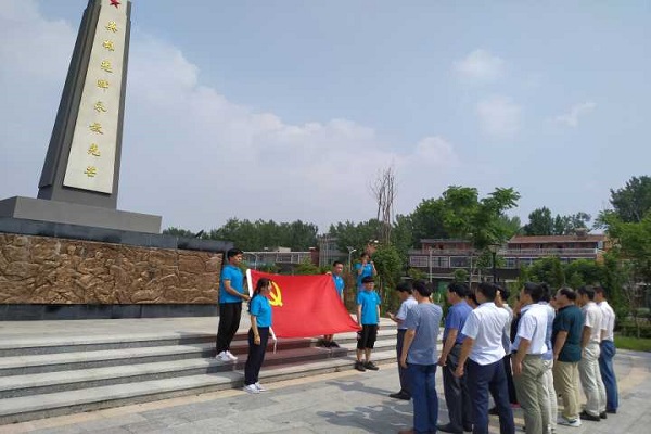 随后,党员教师们来到城北镇烈士陵园,瞻仰了烈士纪念塔并在党委书记方留的领誓下一同重温了入党誓词。