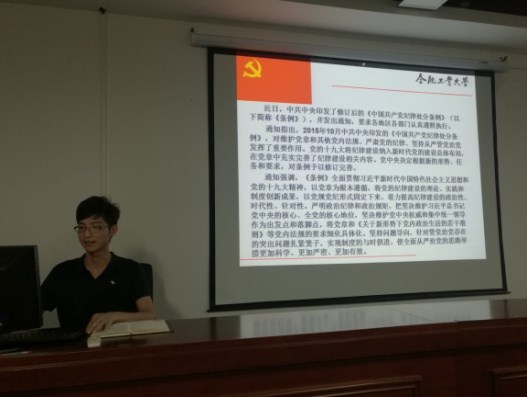 全体党员还对《中国共产党纪律处分条例》进行了学习交流,大家认为,《中国共产党纪律处分条例》依据党章、宪法和法律,结合党的建设实践,以党内法规的形式明确回答了党的纪律和纪律处分方面一系列重大的理论和实践问题,体现了时代性,更具有科学性,标志着我们党的纪律建设更加规范化、制度化。加强《条例》和政治理论学习,是坚定理想信念、增强拒腐防变意识的基础和前提。作为研究生党员,我们应全面遵循党内处分条例和党内监督条例,自觉接受来自各方面的监督,认真开展批评与自我批评,不断创新、不断进步,牢记全心全意为人民服务的宗旨,树立正确权力观、地位观和利益观,始终保持共产党员的先进性。