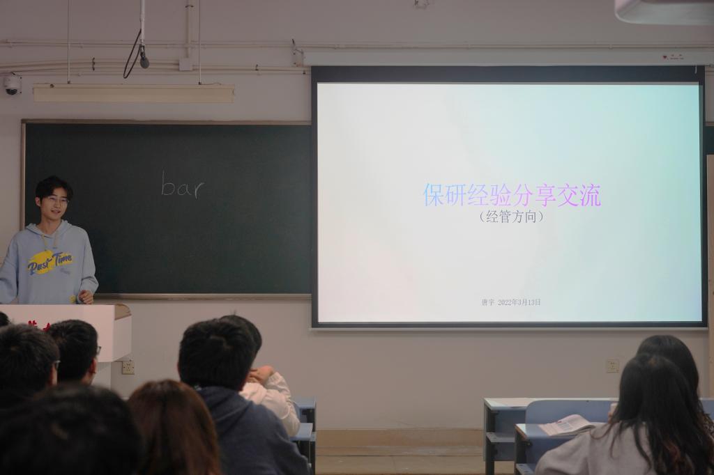 晚上,“π之航”学长助航分享会在8教404教室举行,交流会邀请到保送到浙江大学、上海财经大学、北京航空航天大学、山东大学的4位2018级员工主讲。4位同学结合自身经历,分别从申请公司及专业选择、免研复习计划和材料准备、申请具体流程和技巧等分享了自己的经验。