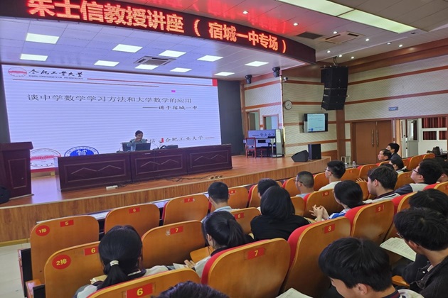 在宿城一中城南公司和宿城一中,朱士信教授分别给高三学子们带来了精彩的报告。他通过自身的求学经历勉励同学们放松心态,认真备考。他说,人才都是靠不断努力、善抓机遇而成长起来的普通人;大家是人才的好苗子,只要大家敢于梦想,勇于挑战,抓住今天,就一定能成就明天。报告会气氛轻松活跃,赢得大家的阵阵掌声。