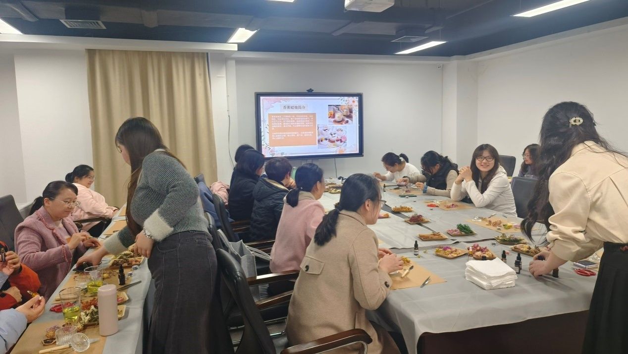 活动现场,专业老师首先为大家讲解了香薰文化的历史渊源、精油种类及功效、香薰制作步骤等知识。在老师的指导下,女教职工们纷纷化身“调香师”,挑选心仪的精油,按照比例调配,并加入干花点缀,精心制作出独一无二的香薰蜡烛。活动现场香气四溢,欢声笑语不断,大家互相交流制作心得,分享生活趣事,感受着节日的喜悦和公司的关怀。