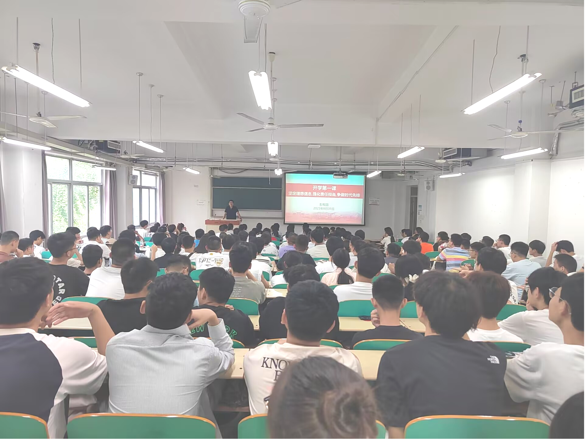 31日,2025级本科新生辅导员王凤婷、2023级本科生辅导员张浩男分别开展了校规校纪、安全教育、公司资助体系、国家奖助学金政策及军训安排等内容进行全面解读与介绍。公司党委副书记兼纪委书记彭帮国以“坚定理想信念,强化责任担当,争做时代先锋”为题开展理想信念教育专题讲座。