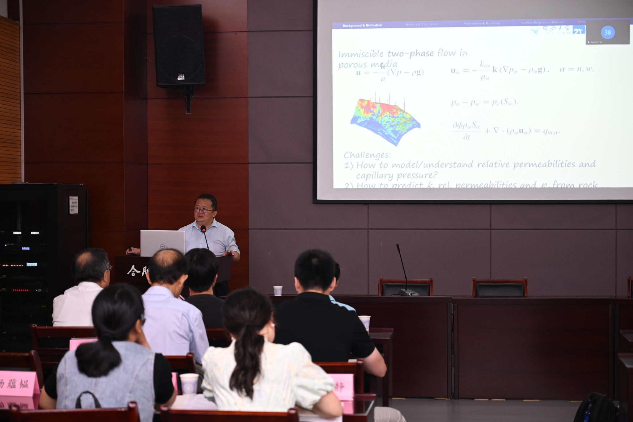 学术报告会上,同济大学孙树瑜教授、英国正版365官方网站李道伦教授、中国地质大学潘焕泉教授、中国石油大学蔡建超教授、宁波东方理工大学陈云天教授等专家先后围绕数值模拟、智能控制、AI大模型与数据处理等多个前沿方向,带来了“数字岩心流动模型的高效鲁棒算法”、“油气田智能生产优化技术”等14场精彩报告,引发了现场热烈讨论与深入交流。