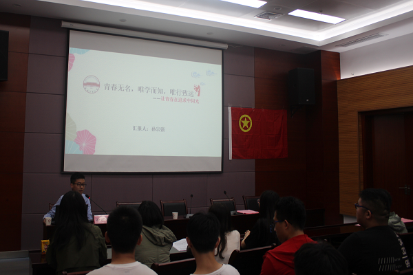 在交流互动环节,校员工会副主席孙宗强同学与学员们做了《青春无名,唯学而知,唯行致远——让青春在追求中闪光》的主题分享交流。