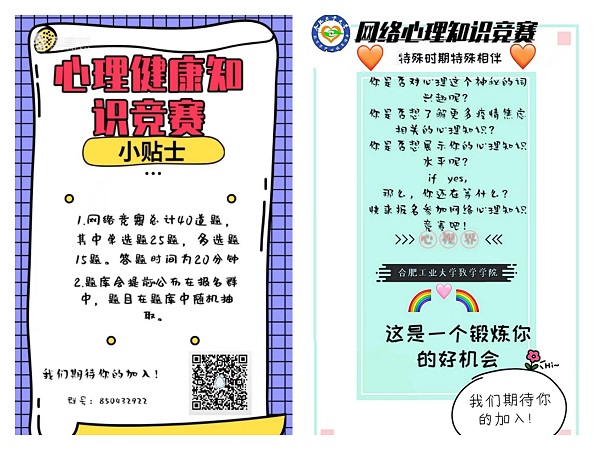 “疫”路有你──网络心理健康知识竞赛活动。为了让员工掌握更多的心理健康知识,增强自身心理素质,保持积极健康心态,4月25日,“疫”路有你──网络心理健康知识竞赛活动通过腾讯会议平台举办,竞赛分为线上必答题和在线抢答两个环节,内容涵盖了老员工学习、生活中的心理健康知识,疫情期间心理特点及心理调适等方面的内容。经过激烈的比拼,江晓锐等三名同学最终脱颖而出获得一等奖。