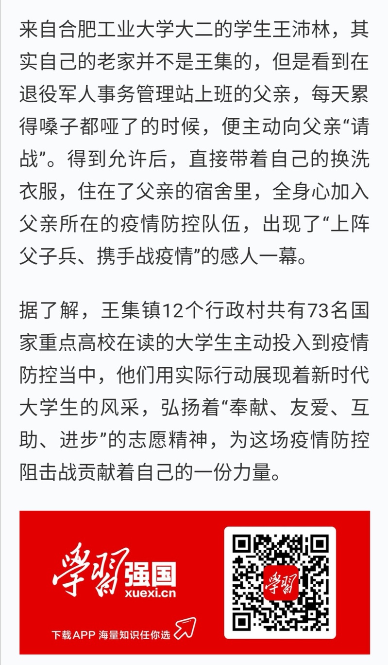 据悉,王沛林的事迹先后受到学习强国和中新网安徽新闻的广泛关注和报道。