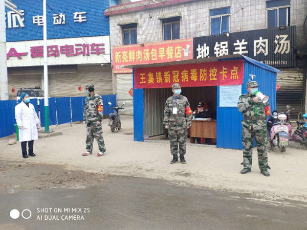 作为一名防控工作者,王沛林随父亲一起值班站岗、一起住在宿舍、轮流换班就餐。值班卡点设在王集镇主干道上,这里车流量大,来往人员复杂,工作任务繁重,加上周边其他路线封堵,商场关门停业使得这里交通和工作压力骤增。