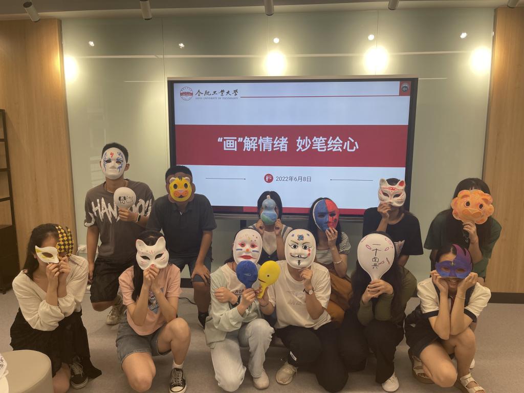 本次活动以“‘画’解情绪 妙笔绘心”为主题,指导老师带领同学们从手绘面具入手,引导跟随自己内心的想法、用画笔描绘自己的心情。小狮子、小狐狸、小葫芦,一张张有趣的面具在同学们的画笔下诞生,五彩斑斓、妙趣横生。绘画结束后,参与同学依次上台分享自己的感受与想法。有的同学天马行空随心着墨,有的同学选择用黄色和橘色画出儿时最喜欢的小动物,有的同学选择用蓝色和红色表达勇敢与活力……每位同学都对自己的“面具”进行了细致的介绍,纷纷表示通过此次心理团体辅导活动,对话了内心世界,排解了压力和烦恼,收获了乐趣和喜悦。