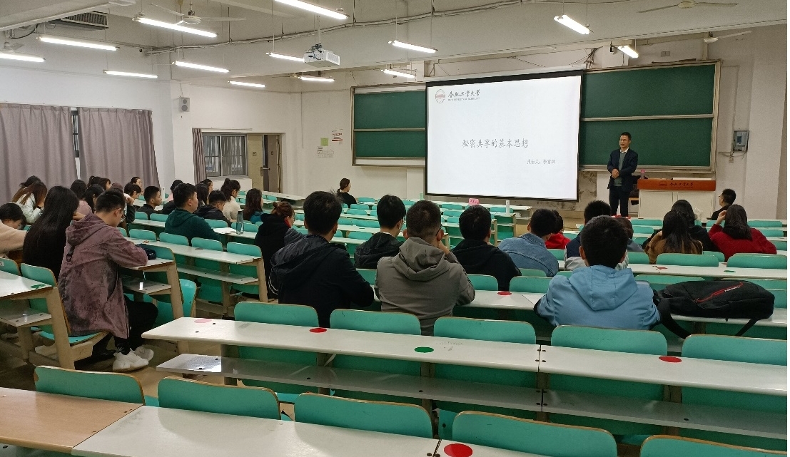 李富林老师从发现问题、科研攻关、论文撰写、“秘密共享”理论的研究内容四个部分出发,围绕“秘密共享的基本思想”展开论述。李老师认为,生活中的许多问题,可以通过科学的思维去解决,科研工作漫长且艰难,不能轻言放弃,坚持才有收获。李老师以自己发表的论文为例,将论文写作的各个部分,分解为标题、引言、创新点、优势、意义、投稿方式等多方面逐一讲解。最后李老师详细介绍了“秘密共享”理论研究中Shamir(t,n)门限秘密共享、量子秘密共享、基于线性码的(t,n)秘密共享方案、可验证的秘密共享等五个研究方向。