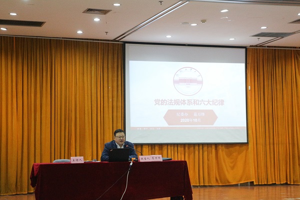 为进一步加强公司党风廉政建设,提升师生廉政素养,提高公司纪检干部队伍综合素质,10月28日下午,公司党委理论学习中心组(扩大)学习会暨公司纪检干部培训专题报告会在公司翡翠湖校区图书馆报告厅召开。公司纪委办公室正处级纪检员兼案件管理办公室主任葛万锋应邀作《党的法规体系和六大纪律》专题报告。会议由公司党委副书记、纪委书记魏婷主持,公司党委理论学习中心组成员、全体教职工、员工党员、入党积极分子参加。