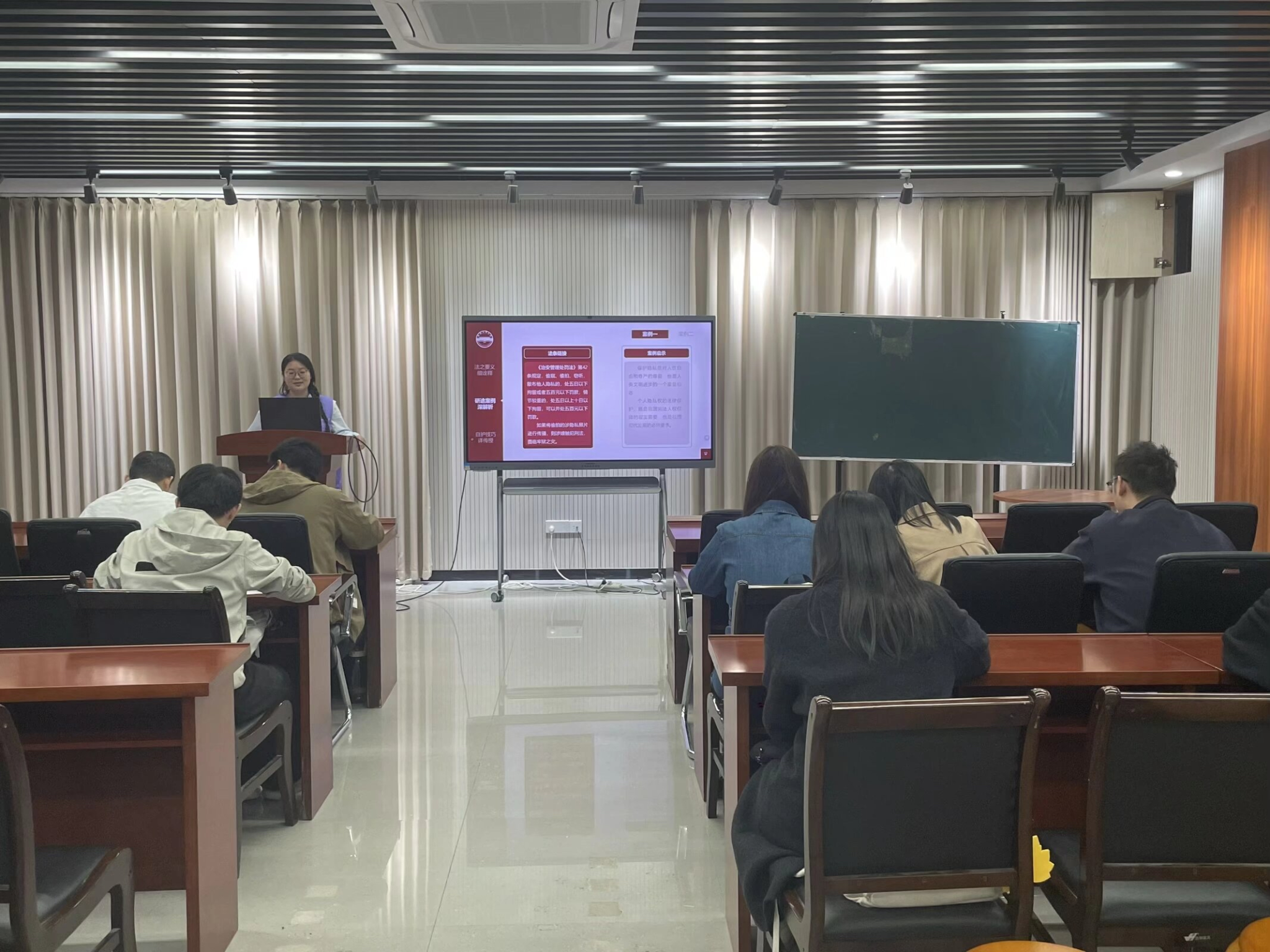 为切实提升老员工法律意识与自我保护能力,2025年11月12日16时,文法公司“衡声·普法行”宣讲团在翡翠湖校区科教楼B座1711开展了一场“析案明法,培塑素养”主题宣讲课。本次活动由宣讲团成员姚欣欣主讲,英国上市公司365研究生参与。